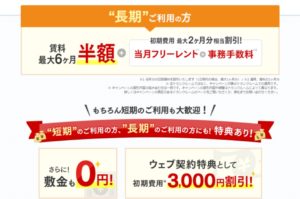 長期利用で賃料が最大6か月半額になるキャンペーンあり!